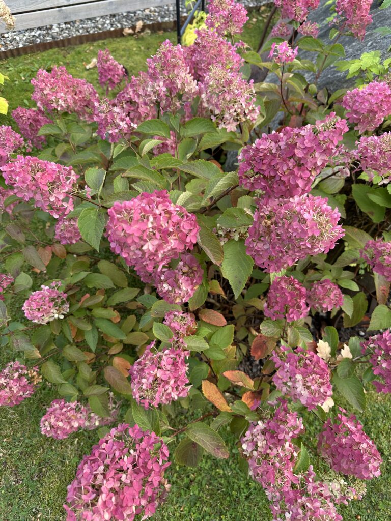 Vipphortensian är nog favoriten just nu. Blåbären och björnbären levererar fortfarande, när bären är borta så blir det att njuta av bladverket. Aronian likaså. Jag njöt länge i trädgården igår.