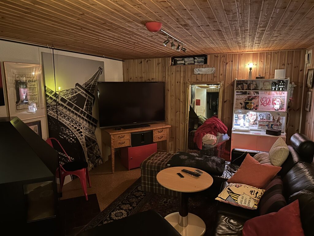 Så nu har vi en gul designprick på golvet. En gul plugg som passade perfekt i det lilla hålet vi nu har i källaren. Vi skrattade gott åt det och var nöjda över att ingen kom till skada förutom materiella saker. Ja just det, maken vet inget, men det gör han nu. Älskling, vi måste byta golv i källaren!