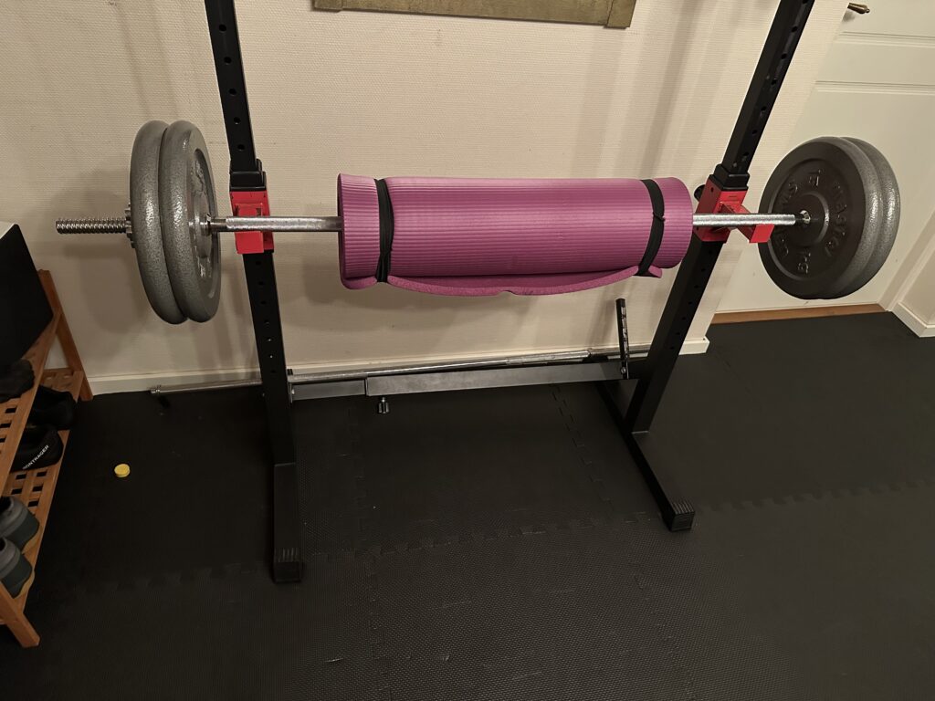 När man börjar bli lite bekväm så kan man tänka sig att göra på ett annorlunda sätt. Som när han skulle ta av 33 kg på stången för att sätta på mjukmattan för hip trust. Den är till för att skydda höftbenen när man lyfter upp stången med höften.
