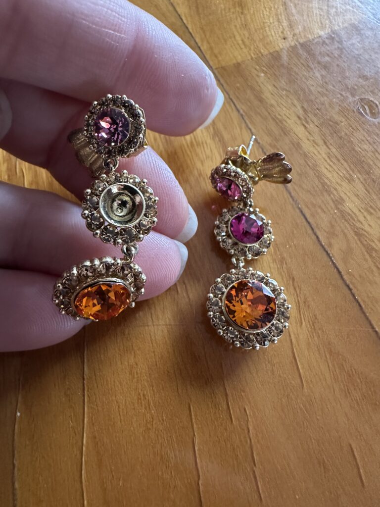 Före påsk gick ett av mina fina örhängen sönder. Jag kom ihåg det som att jag fått det i maken i julklapp. Men så var det inte. Jag fick halsband och armband av honom, sedan köpte jag till örhängena själv. Där ett tyvärr tappade en sten.
