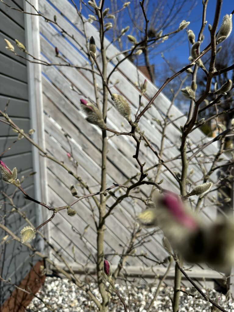 Mycket mer spännande är det att se sparrisen titta fram. Eller hyacinterna som börjar synas tydligt. Inte att förglömma min underbara magnolia. Snart syns ljuvligheten även på håll.