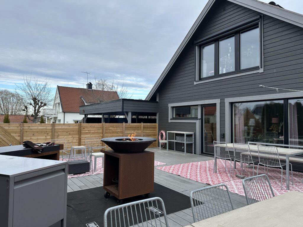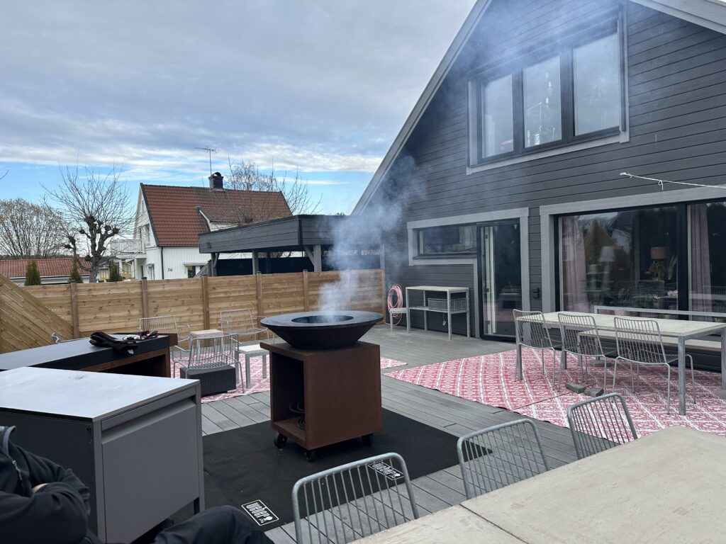 Men den tjocka svarta röken är ingen höjdare. Den brukar i 80 procent av fallen blåsa mot vår loungeplats. Så även igår. Därför har jag nu bestämt att vi ska möblera om på altanen. Maken kommer inte gilla det, när jag berättar vad jag kom fram till igår.