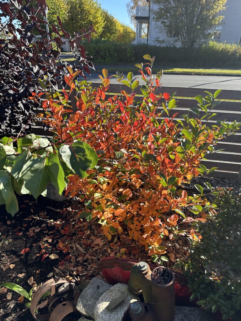 Det är så stor skillnad. Om man då också lägger till alla växter som är planterade så går inget att känna igen. Det satt vi och pratade om i solen. Hur mycket vi har gjort genom åren vi bott här. Jag passade också på att plocka alla aroniabären. Den är mycket fin nu på hösten. Bladen blir eldröda nästan.